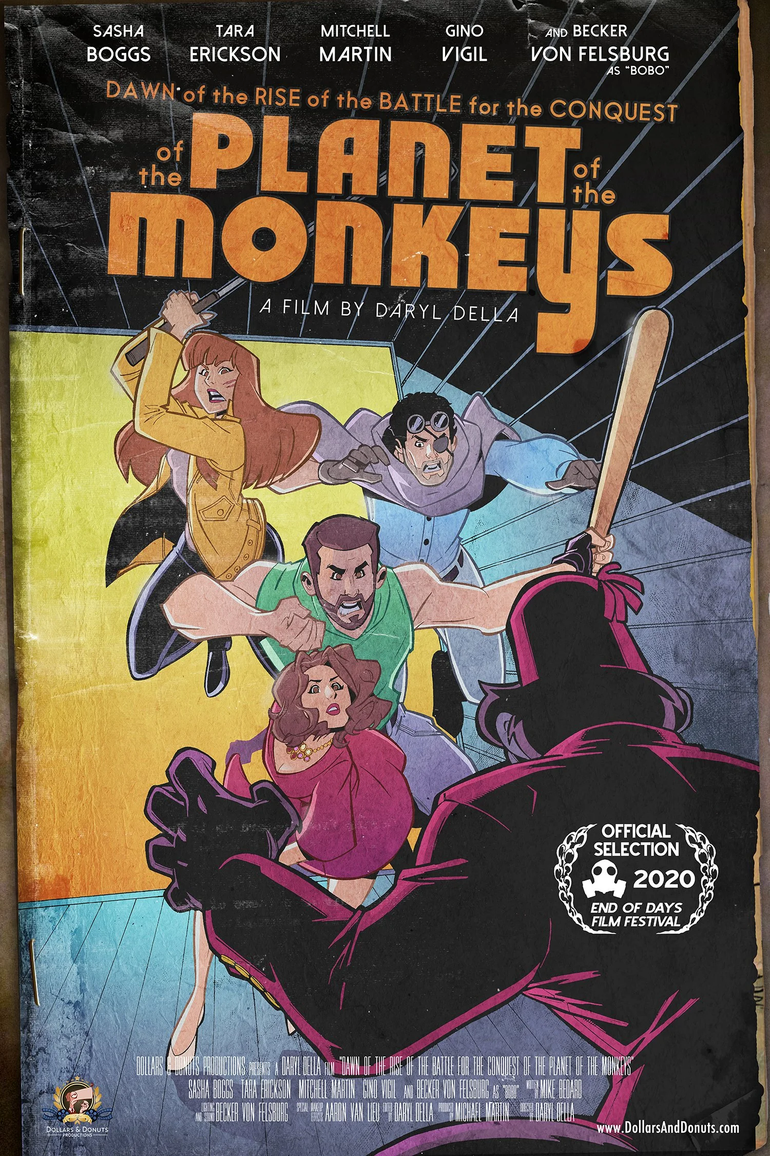 Featuring Sasha Boggs as the vigilant Danielle, Tara Erickson as the battle-hardened Eliza, Mitchell Martin as the conflicted Peter, Gino Vigil as the pragmatic Gary, and Becker Von Felsburg as the fez-wearing monkey, Bobo, this dark comedy juxtaposes a hilariously absurd script with a dramatic and cinematic visual style, enhancing its humor through stark contrast.